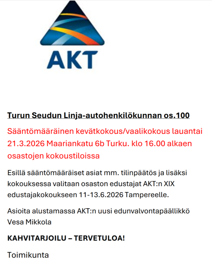 Jukka Kulmala (osasto huomioi hänen merkkipäivänsä), Kari Andrejeff, Kai Parviainen, Mika Rantanen, AKT:n puheenjohtaja Ismo Kokko, osaston taloudenhoitaja Marko Salmivirta, Jani Sivula ja osaston sihteeri Jani Virtanen 19.11.2022.